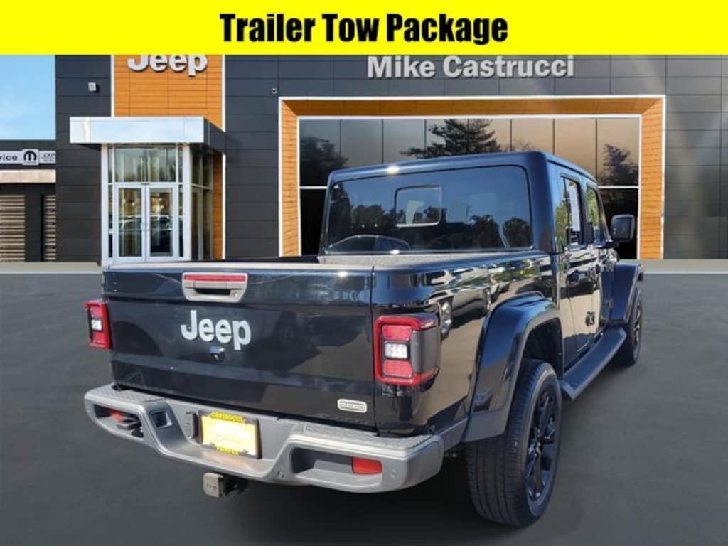 Certified. Black Clearcoat 2022 Jeep Gladiator Overland 4WD 8-Speed Automatic 3.6L V6 24V VVT #1 Seat Foam Cushion, 240 Amp Alternator, 4-Wheel Disc Brakes, 9 Speakers, ABS brakes, Advanced Brake Assist, Advanced Safety Group, Air Conditioning, Alloy wheels, AM/FM radio: SiriusXM, Apple CarPlay/Android Auto, Auto High Beam Headlamp Control, Automatic temperature control, Black 3-Piece Hard Top, Blind Spot & Cross Path Detection, Body Color 3-Piece Hard Top, Class IV Receiver Hitch, Cold Weather Group, Dual front impact airbags, Dual front side impact airbags, Freedom Panel Storage Bag, Front dual zone A/C, Full Length Floor Console Premium Armrest, Full Speed Forward Collision Warning Plus, Heated door mirrors, Heated Front Seats, Heated Steering Wheel, Heavy-Duty Engine Cooling, Leather Trimmed Bucket Seats, Leather Wrapped Park Brake Handle, Leather Wrapped Shift Knob, Low tire pressure warning, MOPAR Hardtop Headliner, Navigation System, No Soft Top, Outside temperature display, Overland Cloth Bucket Seats, Panic alarm, ParkSense Rear Park Assist System, Passenger vanity mirror, Popular Equipment Package, Power steering, Power windows, Premium Wrapped I/P Bezel, Quick Order Package 24G, Radio data system, Radio: Uconnect 4C Nav w/8.4" Display, Rear Armrest w/Cupholder Seat, Rear Sliding Window, Rear Window Defroster, Remote keyless entry, Safety Group, Security system, Speed control, Steering wheel mounted audio controls, Telescoping steering wheel, Tilt steering wheel, Traction control, Trailer Hitch Zoom, Trailer Tow Package, Trip computer.