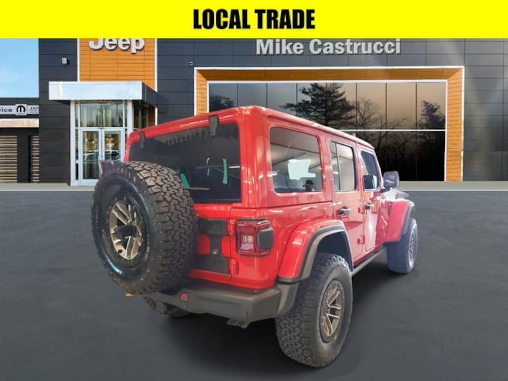 Certified. Firecracker Red Clearcoat 2024 Jeep Wrangler Rubicon 392 4WD 8-Speed Automatic SRT HEMI 6.4L V8 MDS APPLE CAR PLAY, BLUETOOTH HANDS FREE, LOCAL TRADE, 4X4, Lift Kit With Tires and Wheels!, Android Auto, Fully Serviced!, One Owner!, 35" Tire Rubicon 392 Suspension (DISC), 4-Wheel Disc Brakes, 9 Speakers, ABS brakes, Air Conditioning, Alloy wheels, AM/FM radio: SiriusXM with 360L, Apple CarPlay/Android Auto, Auto High-beam Headlights, Automatic temperature control, Convertible HardTop, Delay-off headlights, Dual front impact airbags, Dual front side impact airbags, Emergency communication system: Jeep Connect, Front dual zone A/C, Front fog lights, Fully automatic headlights, Glass rear window, Heated door mirrors, Navigation System, Panic alarm, ParkView Rear Back-Up Camera, Power door mirrors, Power driver seat, Power steering, Power windows, Quick Order Package 27X Rubicon 392 (DISC), Radio data system, Radio: Uconnect 5 Nav w/12.3" Display, Rear Window Defroster, Rear window defroster, Remote keyless entry, Security system, Steering wheel mounted audio controls, Traction control.
