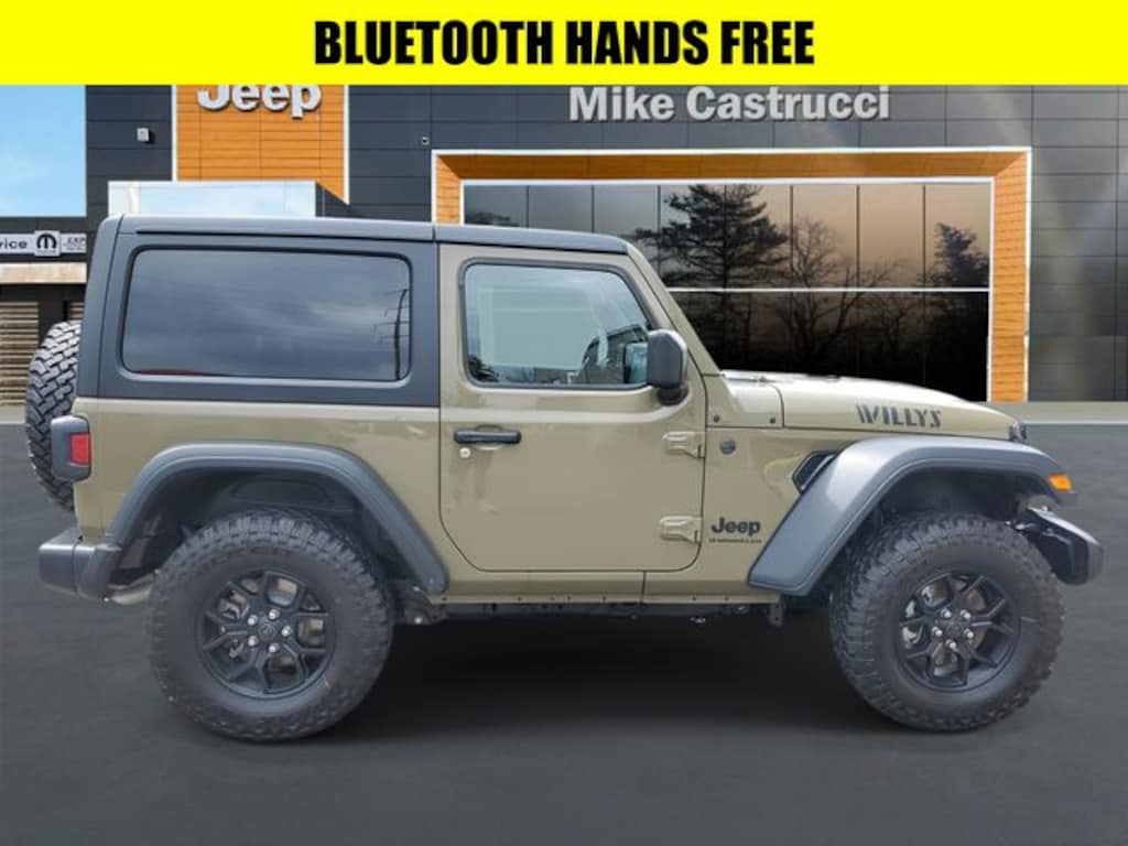 Certified. 41 2025 Jeep Wrangler Willys 4WD 8-Speed Automatic 2.0L I4 DOHC APPLE CAR PLAY, BLUETOOTH HANDS FREE, LOCAL TRADE, 4X4, Android Auto, Fully Serviced!, One Owner!, Safety Tech!, 2-Door Passive Entry, Front Door Locks, 4-Wheel Disc Brakes, 4-Wheel Drive Swing Gate Decal, 4.10 Rear Axle Ratio, 7 & 4 Pin Wiring Harness, 8 Speakers, 97 MPH Vehicle Max Speed Calibration, ABS brakes, Advanced Brake Assist, Air Conditioning w/Auto Temperature Control, Air Filtering, Alpine Premium Audio System, Automatic Headlamps, Auxiliary Switches, Black Grille, Class II Receiver Hitch, Cloth Low-Back Bucket Seats, Cluster 7.0" TFT Color Display, Convenience Group, Conventional Differential Front Axle, Corning Gorilla Glass, Dana M210 Wide HD Tube Front Axle, Dana M220 Wide Rear Axle, Daytime Running Lamps LED Accents, Deep Tint Sunscreen Windows, Dual front impact airbags, Dual front side impact airbags, E-Locker Rear Axle, Emergency/Assistance Call, Enhanced Adaptive Cruise Control, Front Bucket Seats, Front LED Fog Lamps, Heated Front Seats, Heated Steering Wheel, Injection Molded Black Rear Bumper, LED Premium Reflector Headlamps, Mold In Color Bumper w/Gloss Black, Molded in Color Rubicon Highline Flare, MOPAR All-Weather Floor Mats, Occupant sensing airbag, Off-Road Plus Mode, Overhead airbag, ParkView Rear Back-Up Camera, Power Heated Mirrors, Premium Wrapped Steering Wheel, Quick Order Package 22W Willys, Radio: Uconnect 5 w/12.3" Display, Remote Start System, Security Alarm, Sun Visors w/Illuminated Vanity Mirrors, Tachometer, Technology Group (DISC), Telescoping steering wheel, Tilt steering wheel, Universal Garage Door Opener, Wheels: 17" x 7.5" Painted Black, Willy's Suspension, Willys Hood Decal.