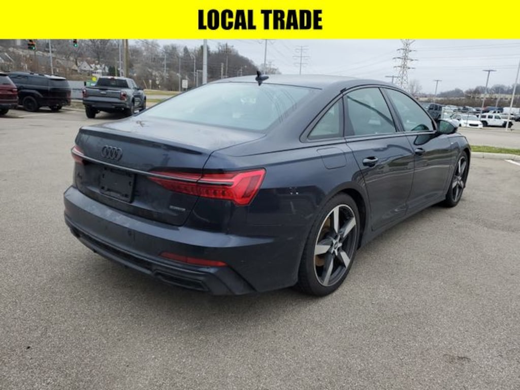 Blue Metallic 2021 Audi A6 3.0T Premium Plus quattro quattro 7-Speed Automatic 3.0L V6 Turbocharged DOHC 24V LEV3-ULEV70 335hp APPLE CAR PLAY, BLUETOOTH HANDS FREE, LOCAL TRADE, 4X4, quattro, Black Leather, 10 Speakers, 4-Wheel Disc Brakes, ABS brakes, Air Conditioning, All Weather Floor Mats, Audi Active Lane Assist w/Emergency Assist, Audi Adaptive Cruise Assist, Audi Black Rings & Badges Kit, Audi Phone Box w/Wireless Charging, Audi Side Assist w/Pre Sense Rear, Audi smartphone interface (Apple CarPlay/Android Auto), Audi Virtual Cockpit, Auto High-beam Headlights, Auto tilt-away steering wheel, Auto-dimming door mirrors, Auto-dimming Rear-View mirror, Automatic temperature control, Bang & Olufsen 3D Premium Sound System, Black Optic Exterior Package, Black Optic Sport Package, Brake assist, Bumpers: body-color, Compass, Contrast Stitching on Door Armrests & Knee Bolster, Convenience Package, Delay-off headlights, Driver door bin, Driver vanity mirror, Dual front impact airbags, Dual front side impact airbags, Electronic Stability Control, Exterior Parking Camera Rear, Front & Rear Door Audi Beam-Rings, Front Bucket Seats, Front Center Armrest, Front dual zone A/C, Front fog lights, Front reading lights, Garage door transmitter: HomeLink, Genuine wood console insert, Headlight Washer System, Heated 3-Spoke Multifunction Steering Wheel, Heated door mirrors, Heated Front Seats, Heated front seats, Illuminated entry, Interior Protection Package, Leather Seating Surfaces, Leather Shift Knob, Low tire pressure warning, Matrix-Design LED Headlights w/High Beam Assist, Memory seat, Navigation system: MMI Navigation plus, Occupant sensing airbag, Outside temperature display, Overhead airbag, Overhead console, Panic alarm, Passenger door bin, Passenger vanity mirror, Power door mirrors, Power driver seat, Power moonroof, Power passenger seat, Power steering, Power windows, Premium Plus Package, Radio: MMI Navigation Plus w/MMI Touch, Rain sensing wipers, Rear reading lights, Rear seat center armrest, Remote keyless entry, Security system, Speed control, Speed-Sensitive Wipers, Split folding rear seat, Sport Suspension (20mm Drop), Steering wheel memory, Steering wheel mounted audio controls, Tachometer, Telescoping steering wheel, Tilt steering wheel, Top View Camera System w/Virtual 360 View, Touchscreen Cleaning Cloth, Variably intermittent wipers, Wheels: 20" Black 5-Arm Polygon-Design.