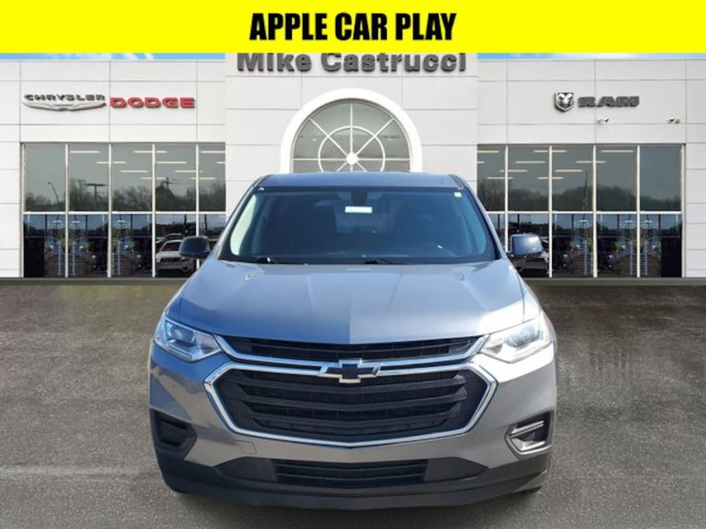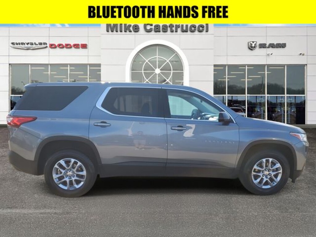 Satin Steel Metallic 2020 Chevrolet Traverse LS FWD 9-Speed Automatic 3.6L V6 SIDI VVT APPLE CAR PLAY, BLUETOOTH HANDS FREE, LOCAL TRADE, Android Auto, 3rd row seats: split-bench, 4-Wheel Disc Brakes, 6 Speakers, 8-Passenger Seating (2-3-3 Seating Configuration), ABS brakes, Air Conditioning, Alloy wheels, AM/FM radio, Apple CarPlay/Android Auto, Automatic temperature control, Bumpers: body-color, Compass, Driver door bin, Driver vanity mirror, Dual front impact airbags, Dual front side impact airbags, Electronic Stability Control, Front & Rear Black Bowtie Emblems (LPO), Front Bucket Seats, Front Center Armrest, Front dual zone A/C, Front reading lights, Fully automatic headlights, Heated door mirrors, High-Intensity Discharge Headlights, Illuminated entry, Low tire pressure warning, Occupant sensing airbag, Outside temperature display, Overhead console, Panic alarm, Passenger vanity mirror, Power door mirrors, Power steering, Power windows, Preferred Equipment Group 1LS, Premium Cloth Seat Trim, Radio data system, Radio: Chevrolet Infotainment System AM/FM Stereo, Rear air conditioning, Rear reading lights, Rear window defroster, Rear window wiper, Remote keyless entry, Security system, Speed control, Split folding rear seat, Steering wheel mounted audio controls, Tachometer, Telescoping steering wheel, Tilt steering wheel, Traction control, Trip computer, Variably intermittent wipers.