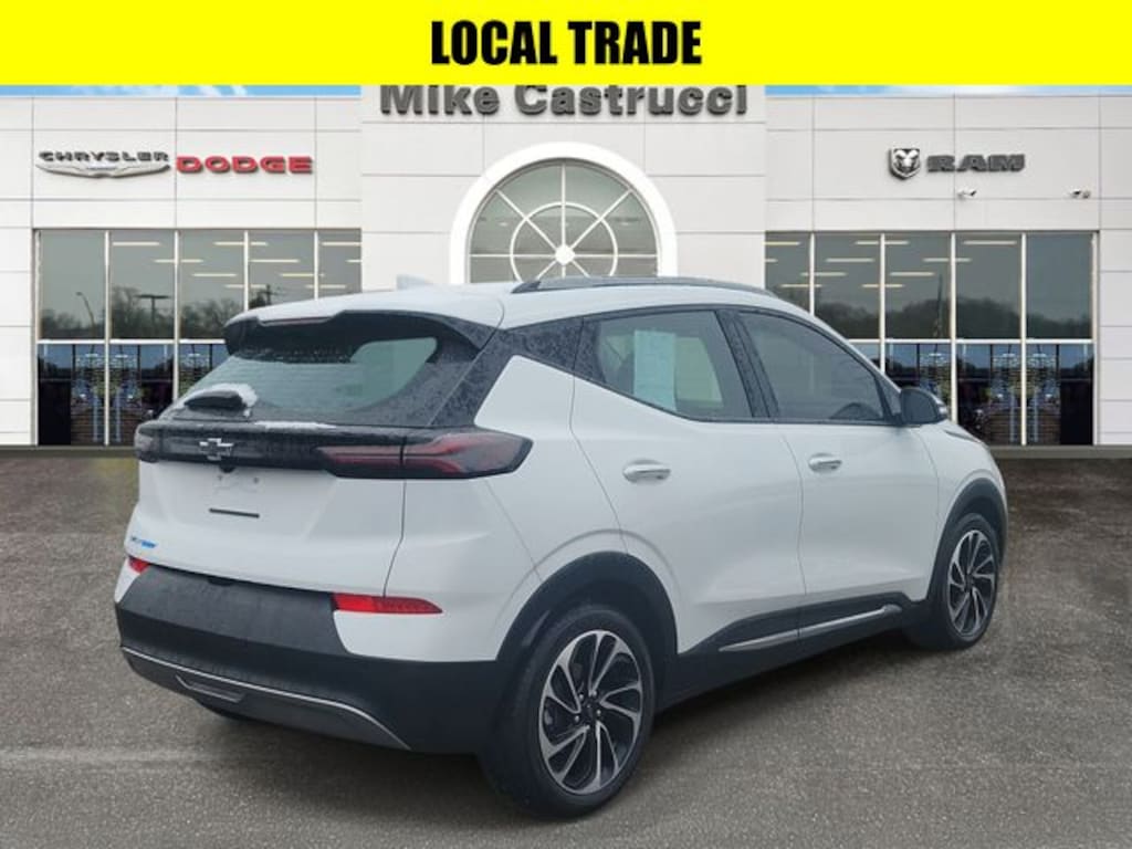 Summit White 2023 Chevrolet Bolt EUV Premier FWD 1-Speed Automatic Electric Motor BLUETOOTH HANDS FREE, Panoramic Sunroof/Moonroof, LOCAL TRADE, 4X4, Android Auto, Fully Serviced!, 2-Way Power Driver Lumbar Seat Adjuster, 4-Wheel Disc Brakes, 6-Speaker Audio System, 6-Way Manual Passenger Seat Adjuster, 8-Way Power Driver Seat Adjuster, ABS brakes, Air Conditioning, Alloy wheels, Apple CarPlay/Android Auto, Auto-dimming Rear-View mirror, Bose Premium 7-Speaker Audio System, Dual front impact airbags, Dual front side impact airbags, Emergency communication system: OnStar and Chevrolet connected services capable, Enhanced Automatic Emergency Braking, Exterior Parking Camera Rear, Front Bucket Seats, Front reading lights, Fully automatic headlights, Heated door mirrors, Heated Driver & Front Passenger Seats, Heated steering wheel, Illuminated entry, Low tire pressure warning, Occupant sensing airbag, Outside temperature display, Overhead airbag, Overhead console, Panic alarm, Passenger vanity mirror, Performance Ride & Handling Suspension, Power door mirrors, Power driver seat, Power Dual Panel Panoramic Sunroof w/Slide, Power steering, Power windows, Preferred Equipment Group 2LZ, Premium audio system: Chevrolet Infotainment 3 Plus, Radio: Chevrolet Infotainment 3 Plus System w/Navi, Rear reading lights, Rear seat center armrest, Rear side impact airbag, Rear window defroster, Remote keyless entry, Security system, Speed control, Split folding rear seat, Steering wheel mounted audio controls, Sun & Sound Package, Super Cruise, Super Cruise Package, Telescoping steering wheel, Tilt steering wheel, Traction control, Trip computer, Variably intermittent wipers, Ventilated Driver Seat, Ventilated Front Passenger Seat, Ventilated front seats.
