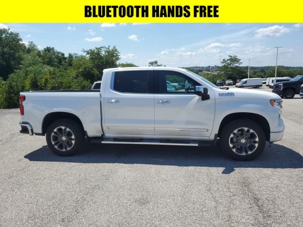 Iridescent Pearl Tricoat 2024 Chevrolet Silverado 1500 High Country 4WD 10-Speed Automatic EcoTec3 6.2L V8 APPLE CAR PLAY, BLUETOOTH HANDS FREE, LOCAL TRADE, 4X4, Android Auto, Fully Serviced!, One Owner!, 10-Speed Automatic, 4WD, Jet Black/Umber Leather, 10-Way Power Driver Seat w/Lumbar, 10-Way Power Passenger Seat Adjuster w/Lumbar, 12.3" Multicolor Reconfigurable Digital Display, 120-Volt Interior Power Outlet, 170 Amp Alternator, 2 USB Data Ports, 2nd Row Heated Outboard Seats, 7 Speakers, Adaptive Cruise Control, Alloy wheels, Auto-Dimming Inside Rear-View Mirror, Auto-Locking Rear Differential, Automatic temperature control, Bed View Camera, Body-Color Painted Mirror Caps, Chevrolet Connected Access Capable, Chevytec Spray-On Black Bedliner, Chrome Assist Steps, Chrome Recovery Hooks, Color-Keyed Carpeting Floor Covering, Compass, Deep-Tinted Glass, Delay-off headlights, Driver door bin, Driver Memory, Driver vanity mirror, Dual Exhaust w/Polished Outlets, Dual Rear USB Ports (Charge Only), Electrical Steering Column Lock, Floor Mounted Center Console, Following Distance Indicator, Forward Collision Alert, Front Bucket Seats, Front Carpeted Floor Mats, Front Center Armrest, Front dual zone A/C, Front fog lights, Front LED Fog Lamps, Front Pedestrian Braking, Front Rain-Sensing Wipers, Front reading lights, Fully automatic headlights, Garage door transmitter, Genuine wood console insert, Genuine wood dashboard insert, Genuine wood door panel insert, HD Surround Vision, Heated Driver & Front Outboard Passenger Seats, Heated front seats, Heated rear seats, Heated Steering Wheel, Heated steering wheel, High Capacity Suspension Package, Hitch Guidance, Hitch Guidance w/Hitch View, Illuminated entry, Integrated Trailer Brake Controller, Keyless Open & Start, Lane Keep Assist w/Lane Departure Warning, LED Cargo Area Lighting, Memory seat, OnStar & Chevrolet Connected Services Capable, Outside Heated Power-Adjustable Mirrors, Panic alarm, Passenger vanity mirror, Perforated Leather Seat Trim, Perimeter Lighting, Power driver seat, Power Front Passenger Windows w/Express Up/Down, Power Front Windows w/Driver Express Up/Down, Power passenger seat, Power Rear Windows w/Express Down, Power Sliding Rear Window w/Rear Defogger, Power steering, Power Tailgate, Power Tilt & Telescoping Steering Column, Power windows, Preferred Equipment Group 3LZ, Premium Bose 7-Speaker Sound System, Rain sensing wipers, Rear Cross Traffic Braking, Rear Pedestrian Alert, Rear seat center armrest, Rear Wheelhouse Liners, Remote keyless entry, Remote Vehicle Starter System, Safety Alert Seat, Security system, SiriusXM w/360L, Split folding rear seat, Standard Tailgate, Steering Wheel Audio Controls, Steering wheel mounted audio controls, Tachometer, Telescoping steering wheel, Traction control, Trailer Camera Provisions, Trailer Side Blind Zone Alert, Trailering Package, Trip computer, Ultrasonic Front & Rear Park Assist, Universal Home Remote, Up-Level Rear Seat w/Storage Package, Ventilated Driver & Front Passenger Seats, Ventilated front seats, Wi-Fi Hot Spot Capable, Wrapped Steering Wheel.