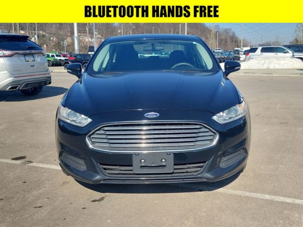 Shadow Black 2016 Ford Fusion SE FWD 6-Speed Automatic 2.5L iVCT BLUETOOTH HANDS FREE, LOCAL TRADE, 6-Speed Automatic, 4-Wheel Disc Brakes, ABS brakes, Air Conditioning, Alloy wheels, AM/FM radio: SiriusXM, CD player, Cloth Front Bucket Seats, Compass, Delay-off headlights, Driver door bin, Driver vanity mirror, Dual front impact airbags, Dual front side impact airbags, Equipment Group 200A, Exterior Parking Camera Rear, Front Bucket Seats, Front Center Armrest, Front reading lights, Fully automatic headlights, Heated door mirrors, Illuminated entry, Low tire pressure warning, Occupant sensing airbag, Outside temperature display, Overhead airbag, Overhead console, Panic alarm, Passenger vanity mirror, Power door mirrors, Power driver seat, Power passenger seat, Power steering, Power windows, Rear reading lights, Rear seat center armrest, Rear window defroster, Remote keyless entry, Reverse Sensing System, Security system, Speed-Sensitive Wipers, Split folding rear seat, Steering wheel mounted audio controls, Tachometer, Telescoping steering wheel, Tilt steering wheel, Traction control, Variably intermittent wipers.