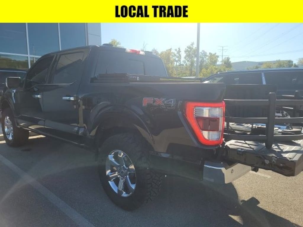 Certified. Agate Black Metallic 2022 Ford F-150 Lariat 4WD 10-Speed Automatic 3.5L V6 EcoBoost APPLE CAR PLAY, BLUETOOTH HANDS FREE, LOCAL TRADE, 4X4, Android Auto, Sunroof/Moonroof, One Owner!, 4WD, 4-Wheel Disc Brakes, 4x4 FX4 Off-Road Bodyside Decal, 6" Bright Polished Running Board, ABS brakes, Auto High-beam Headlights, Auto Start-Stop Removal, Automatic temperature control, Brake assist, Chrome 2-Bar Grille w/4 Minor Bars, Chrome Door & Tailgate Handles w/Body-Color Bezel, Chrome Single-Tip Exhaust, Chrome Skull Caps on Exterior Mirrors, Class IV Trailer Hitch Receiver, Delay-off headlights, Dual front impact airbags, Dual front side impact airbags, Electronic Stability Control, Equipment Group 501A Mid, Extended Range 36 Gallon Fuel Tank, Exterior Parking Camera Rear, Front Center Armrest w/Storage, Front dual zone A/C, Front fog lights, Fully automatic headlights, FX4 Off-Road Package, Heated front seats, Hill Descent Control, Integrated Trailer Brake Controller, Interior Work Surface, Lariat Chrome Appearance Package, Leather-Trimmed 40/20/40 Front Seat, Low tire pressure warning, Memory seat, Monotube Rear Shocks, Occupant sensing airbag, Off-Road Tuned Front Shock Absorbers, Onboard 400W Outlet, Outside temperature display, Overhead console, Panic alarm, Passenger door bin, Passenger vanity mirror, Power steering, Power windows, Pro Trailer Backup Assist, Radio: B&O Sound System by Bang & Olufsen, Remote keyless entry, Rock Crawl Mode, Speed-sensing steering, Steering wheel mounted audio controls, SYNC 4 w/Enhanced Voice Recognition, Tachometer, Telescoping steering wheel, Tilt steering wheel, Traction control, Trailer Tow Package, Tray Style Floor Liner (47W), Trip computer, Universal Garage Door Opener, Wheels: 18" Chrome-Like PVD.