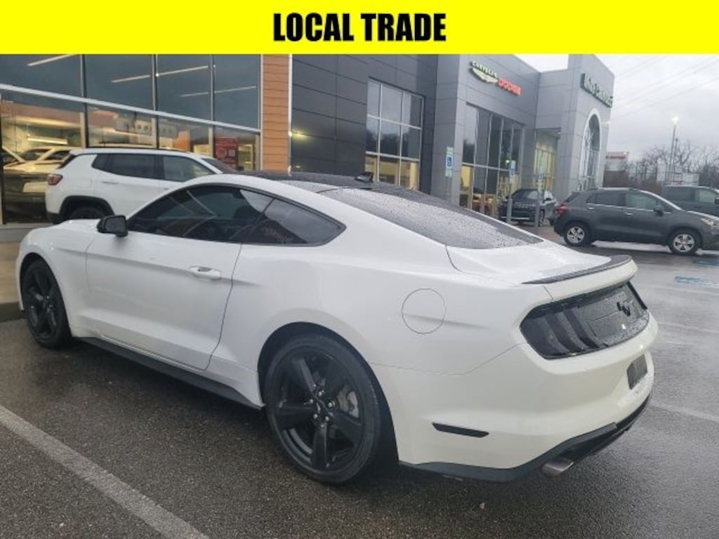 Oxford White 2022 Ford Mustang EcoBoost RWD 10-Speed Automatic EcoBoost 2.3L I4 GTDi DOHC Turbocharged VCT APPLE CAR PLAY, BLUETOOTH HANDS FREE, LOCAL TRADE, 4X4, Android Auto, One Owner!, 4-Wheel Disc Brakes, ABS brakes, Air Conditioning, Auto-dimming Rear-View mirror, Black Accent Package, Black Blade Decklid Spoiler, Black Front & Rear Pony Badges, Black Grille, Black Mirror Caps, Compass, Driver door bin, Driver vanity mirror, Dual front impact airbags, Dual front side impact airbags, Exterior Parking Camera Rear, Front Bucket Seats, Front Center Armrest, Front reading lights, Fully automatic headlights, Illuminated entry, Leather Shift Knob, Low tire pressure warning, Occupant sensing airbag, Outside temperature display, Overhead airbag, Overhead console, Painted Black Roof, Passenger door bin, Passenger vanity mirror, Power steering, Power windows, Radio data system, Rain sensing wipers, Rear Parking Sensors, Rear window defroster, Remote keyless entry, Security system, SiriusXM Radio, Speed control, Speed-sensing steering, Split folding rear seat, Steering wheel mounted audio controls, SYNC 3 Communications & Entertainment System, Tachometer, Telescoping steering wheel, Tilt steering wheel, Traction control, Trip computer, Variably intermittent wipers, Voltmeter, Wheels: 19" x 8.5" Ebony Black-Painted Aluminum.