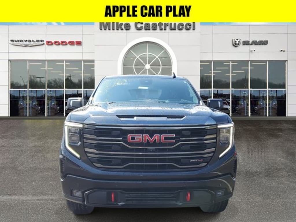 Certified. Onyx Black 2023 GMC Sierra 1500 AT4 4WD 10-Speed Automatic EcoTec3 6.2L V8 APPLE CAR PLAY, BLUETOOTH HANDS FREE, Panoramic Sunroof/Moonroof, LOCAL TRADE, 4X4, Android Auto, Sunroof/Moonroof, One Owner!, 10-Speed Automatic, 4WD, Jet Black With Kalahari Accents Leather, 10-Way Power Driver Seat Adjuster w/Lumbar, 10-Way Power Passenger Seat Adjuster w/Lumbar, 120-Volt Bed Mounted Power Outlet, 120-Volt Instrument Panel Power Outlet, 18" x 8.5" Machined Aluminum Wheels, 2 Charge/Data USB Ports Inside Center Console, 2 Type-C Charge-Only Rear USB Ports, 2 USB Ports, 220 Amp Alternator, 4-Wheel Disc Brakes, ABS brakes, Adaptive Cruise Control, Air Conditioning, Apple CarPlay/Android Auto, AT4 Preferred Package, Auto High-beam Headlights, Auto-dimming door mirrors, Auto-Locking Rear Differential, Automatic Emergency Braking, Automatic temperature control, Bed View Camera, Black Chrome Header & Grille Insert Bars, Block heater, Bumpers: body-color, Color-Keyed Carpeting Floor Covering, Compass, Deep-Tinted Glass, Driver door bin, Driver Memory, Driver vanity mirror, Dual front impact airbags, Dual front side impact airbags, Electric Rear-Window Defogger, Electrical Steering Column Lock, Engine Block Heater, External Engine Oil Cooling, Floor-Mounted Center Console, Following Distance Indicator, Forward Collision Alert, Front Bucket Seats, Front Center Armrest, Front dual zone A/C, Front fog lights, Front Pedestrian Braking, Front Prem Floor Liners w/Removable Carpet Insert, Front Rainsensing Wipers, Fully automatic headlights, GMC Connected Access Capable, HD Surround Vision, Heated 2nd Row Outboard Seats, Heated door mirrors, Heated Driver & Front Outboard Passenger Seating, Heated front seats, Heated rear seats, Heated steering wheel, Heavy-Duty Air Filter, Hill Descent Control, Hitch Guidance, Hitch Guidance w/Hitch View, Illuminated entry, In-Vehicle Trailering App, Integrated Trailer Brake Controller, IntelliBeam Automatic High Beam On/Off, Keyless Open & Start, Lane Keep Assist w/Lane Departure Warning, LED Cargo Area Lighting, Memory seat, Multicolor 15" Diagonal Head-Up Display, Navigation System, OnStar & GMC Connected Services Capable, Perforated Front Leather Seat Trim, Perimeter Lighting, Power Door Locks, Power door mirrors, Power driver seat, Power Front Passenger Windows w/Express Up/Down, Power Front Windows w/Driver Express Up/Down, Power passenger seat, Power Rake & Telescoping Steering Column, Power Rear Windows w/Express Down, Power Sliding Rear Window w/Rear Defogger, Power Sunroof, Preferred Equipment Group 4SB, Premium Bose 7-Speaker Sound System, Push Button Start, Rain sensing wipers, Rear Camera Mirror, Rear Cross Traffic Braking, Rear Pedestrian Detection, Rear Prem Floor Liners w/Removable Carpet Insert, Rear step bumper, Rear Wheelhouse Liners, Rear window defroster, Red Recovery Hooks, Remote Vehicle Starter System, SiriusXM w/360L, Split folding rear seat, Spray-On Pickup Bed Liner w/AT4 Logo, Steering Wheel Audio Controls, Tachometer, Technology Package, Telescoping steering wheel, Theft Deterrent System (Unauthorized Entry), Tilt steering wheel, Traction control, Trailer Camera Provisions, Trailer Side Blind Zone Alert, Trailering Package, Ultrasonic Front & Rear Park Assist, Universal Home Remote, Variably intermittent wipers, Ventilated Driver & Front Passenger Seats, Ventilated front seats, Wi-Fi Hotspot Capable, Wireless Charging, Wireless Phone Projection.