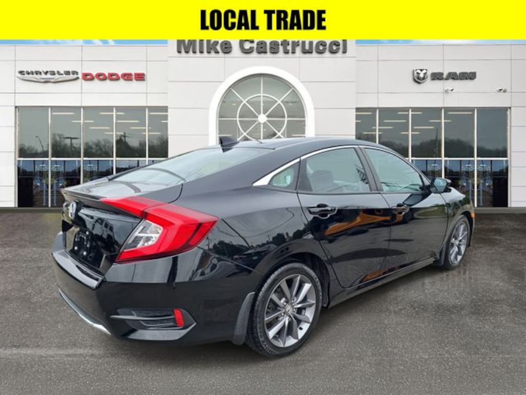 Black 2021 Honda Civic EX FWD CVT 1.5L I-4 DI DOHC Turbocharged APPLE CAR PLAY, BLUETOOTH HANDS FREE, LOCAL TRADE, Android Auto, Black Cloth, 4-Wheel Disc Brakes, ABS brakes, Air Conditioning, Alloy wheels, AM/FM radio: SiriusXM, Auto High-beam Headlights, Automatic temperature control, Cloth Seat Trim, Driver door bin, Driver vanity mirror, Dual front impact airbags, Dual front side impact airbags, Exterior Parking Camera Rear, Front Bucket Seats, Front Center Armrest, Front reading lights, Fully automatic headlights, Heated door mirrors, Heated Front Bucket Seats, Heated front seats, Illuminated entry, Lane departure: Lane Keeping Assist System (LKAS) active, Outside temperature display, Overhead console, Panic alarm, Passenger vanity mirror, Power door mirrors, Power driver seat, Power moonroof, Power steering, Power windows, Rear seat center armrest, Rear window defroster, Remote keyless entry, Security system, Speed control, Split folding rear seat, Steering wheel mounted audio controls, Tachometer, Telescoping steering wheel, Tilt steering wheel, Traction control, Trip computer.