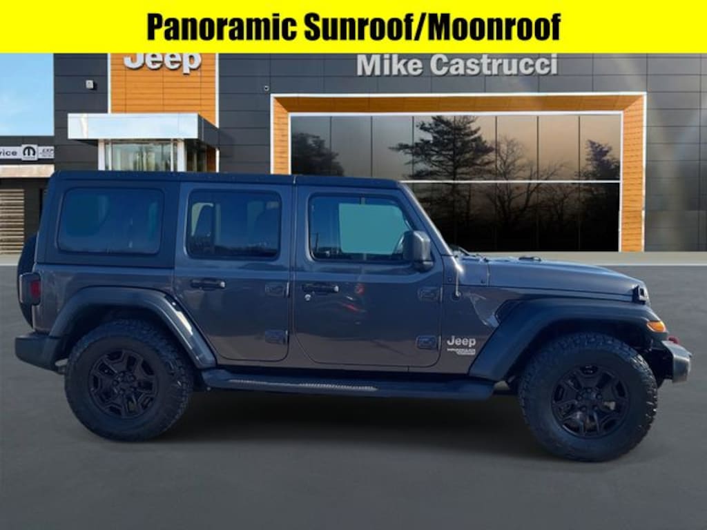 Granite Crystal Metallic Clearcoat 2019 Jeep Wrangler Unlimited Sport S 4WD 8-Speed Automatic 3.6L V6 24V VVT APPLE CAR PLAY, Panoramic Sunroof/Moonroof, LOCAL TRADE, 1-Yr SiriusXM Radio Service, 4-Wheel Disc Brakes, 7.0" Touchscreen Display, ABS brakes, Air Conditioning w/Auto Temperature Control, Air Filtering, Apple CarPlay, Automatic Headlamps, Cluster 7.0" TFT Color Display, Cold Weather Group, Convenience Group, Deep Tint Sunscreen Windows, Dual front impact airbags, Dual front side impact airbags, For More Info, Call 800-643-2112, Front 1-Touch Down Power Windows, Google Android Auto, GPS Antenna Input, Heated Front Seats, Heated Steering Wheel, Integrated Center Stack Radio, Leather Wrapped Steering Wheel, Power Heated Mirrors, Quick Order Package 24S Sport S, Radio: Uconnect 4 w/7" Display, Remote Keyless Entry, Security Alarm, SiriusXM Satellite Radio, Speed Sensitive Power Locks, Sun Visors w/Illuminated Vanity Mirrors, Technology Group, Telescoping steering wheel, Tilt steering wheel, Universal Garage Door Opener, USB Host Flip, Wheels: 17" x 7.5" Tech Silver Aluminum.