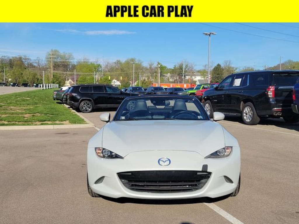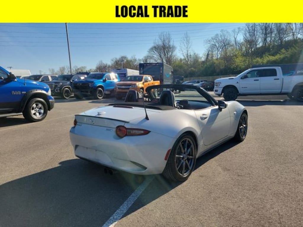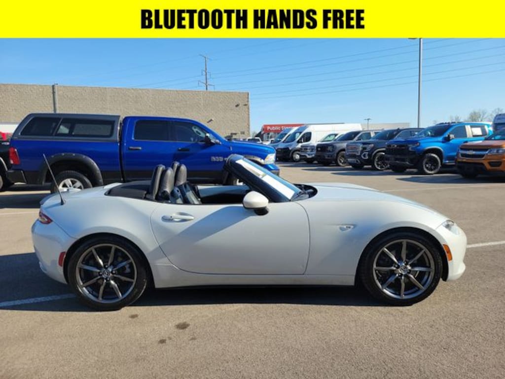 Ceramic Metallic 2016 Mazda Miata Grand Touring RWD 6-Speed Manual 2.0L I4 DOHC VVT 16V APPLE CAR PLAY, BLUETOOTH HANDS FREE, LOCAL TRADE, Black W/Red Stitching Leather, 4-Wheel Disc Brakes, 9 Speakers, ABS brakes, Advanced Keyless Entry System, Air Conditioning, Alloy wheels, AM/FM radio: SiriusXM, Auto-dimming Rear-View mirror, Automatic temperature control, Convertible roof lining, Driver vanity mirror, Dual front impact airbags, Dual front side impact airbags, Front Bucket Seats, Front Center Armrest, Fully automatic headlights, Garage door transmitter: HomeLink, Glass rear window, Heated front seats, Illuminated entry, Leather Shift Knob, Leather Upholstery, Navigation System, Outside temperature display, Passenger vanity mirror, Power steering, Power windows, Rain sensing wipers, Rear window defroster, Reclining Front Heated Bucket Seats, Security system, Sport steering wheel, Tachometer, Tilt steering wheel, Traction control, Trip computer, Variably intermittent wipers.