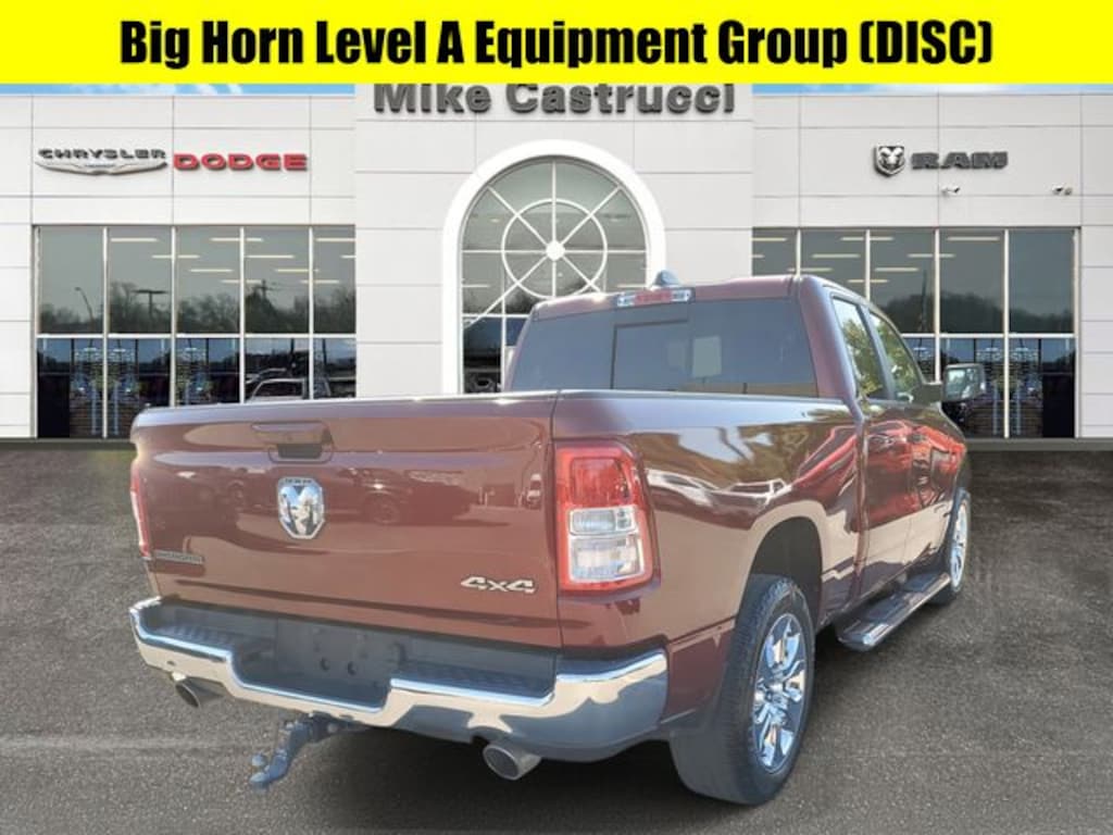 Delmonico Red Pearlcoat 2022 Ram 1500 Big Horn/Lone Star 4WD 8-Speed Automatic HEMI 5.7L V8 Multi Displacement VVT 4-Wheel Disc Brakes, 4G LTE Wi-Fi Hot Spot, 8.4" Touchscreen Display, ABS brakes, Apple CarPlay, Auto-Dimming Exterior Driver Mirror, Auto-Dimming Rear-View Mirror, Big Horn Badge, Big Horn Level A Equipment Group (DISC), Black Premium Power Mirrors (GUL), Bluetooth Handsfree Phone & Audio, Class IV Receiver Hitch, Cluster 3.5" TFT Color Display, Connectivity - US/Canada, Dual front impact airbags, Dual front side impact airbags, Exterior Mirrors Courtesy Lamps, Exterior Mirrors w/Supplemental Signals, Foam Bottle Insert (Door Trim Panel), For More Info, Call 800-643-2112, Fully automatic headlights, Glove Box Lamp, Google Android Auto, GPS Navigation, Integrated Center Stack Radio, ParkView Rear Back-Up Camera, Power 2-Way Driver Lumbar Adjust, Power 8-Way Driver Seat, Power Adjustable Pedals, Quick Order Package 25Z Big Horn, Radio: Uconnect 5 W w/8.4" Display, Rear Dome w/On/Off Switch Lamp, Rear Power Sliding Window, Rear Window Defroster, SiriusXM Radio Service, SiriusXM Satellite Radio, Speed control, Sun Visors w/Illuminated Vanity Mirrors, Universal Garage Door Opener, USB Host Flip.
