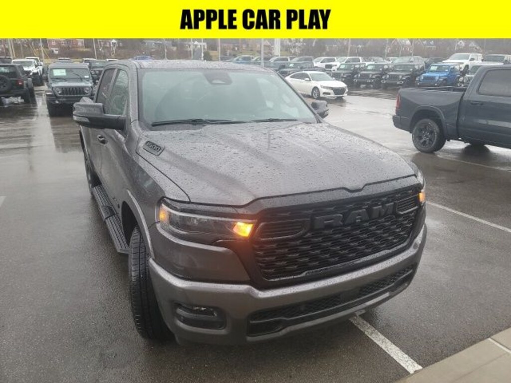 Granite Crystal Metallic Clearcoat 2025 Ram 1500 Big Horn/Lone Star 4WD 8-Speed Automatic 3.0L I6 APPLE CAR PLAY, BLUETOOTH HANDS FREE, LOCAL TRADE, 4X4, Android Auto, One Owner!, 115V Auxiliary Power Outlet, 115V Auxiliary Rear Power Outlet, 12" Touchscreen Display, 2nd Row In Floor Storage Bins, 4-Wheel Disc Brakes, 400W Inverter, 4G LTE Wi-Fi Hot Spot, 9 Amplified Speakers w/Subwoofer, ABS brakes, Accent Color Door Handles, Accent Color Premium Power Mirrors, Accent Color Tailgate Handle, Air Conditioning ATC w/Dual Zone Control, Anti-Spin Differential Rear Axle, Apple CarPlay, Apple CarPlay/Android Auto, Auto High-beam Headlights, Auto Power-Folding Mirrors, Auto-Dimming Exterior Driver Mirror, Auto-Dimming Rear-View Mirror, Bed Utility Group, Big Horn Level 2 Equipment Group, Black Exterior Mirrors, Black Exterior Truck Badging, Black Headlamp Bezels, Black Painted Exterior Mirrors Caps, Black Premium Power Mirrors, Black Tail Lamp Bezels, Body Color Front Bumper, Body Color Rear Bumper w/Step Pads, Bumpers: chrome, Cluster 12" TFT Color Display, Compass, Configurable Drive Mode, Driver door bin, Dual front impact airbags, Dual front side impact airbags, Exterior 115V AC Outlet, Front Center Armrest w/Storage, Front fog lights, Front reading lights, Fully automatic headlights, Glove Box Lamp, Google Android Auto, GPS Antenna Input, GPS Navigation, HD Radio, Heated door mirrors, Heated Front Seats, Heated Steering Wheel, Illuminated entry, Integrated Voice Command w/Bluetooth, Leather Wrapped Steering Wheel, LED Dome Lamp w/On/Off Switch, LED Footwell Lighting, Low tire pressure warning, Media Hub w/2 Charge Only USBs, MOPAR 4 Adjustable Cargo Tie-Down Hooks, MOPAR Spray In Bedliner, Night Edition, Occupant sensing airbag, Outside temperature display, Overhead airbag, Overhead console, Overhead LED Lamps, Panic alarm, ParkView Rear Back-Up Camera, Passenger door bin, Passenger vanity mirror, Pick-Up Box Lighting, Power Adjustable Pedals, Premium Overhead Console, Quick Order Package 21Z Big Horn, Radio: Uconnect 5 Nav w/12.0" Display, RAM Grille Badge - Black, RAM Grille Badge - Chrome, Rear Power Sliding Window, Rear seat center armrest, Rear step bumper, Rear Window Defroster, Remote Tailgate Release, Security Alarm, SiriusXM w/360L, Steering Wheel Mounted Audio Controls, Sun Visors w/Illuminated Vanity Mirrors, Tachometer, Telescoping steering wheel, Tilt steering wheel, Trailer Brake Control, Trip computer, Universal Garage Door Opener, USB Host Flip, Variably intermittent wipers, Wheels: 20" x 9.0" Aluminum Painted Clad.