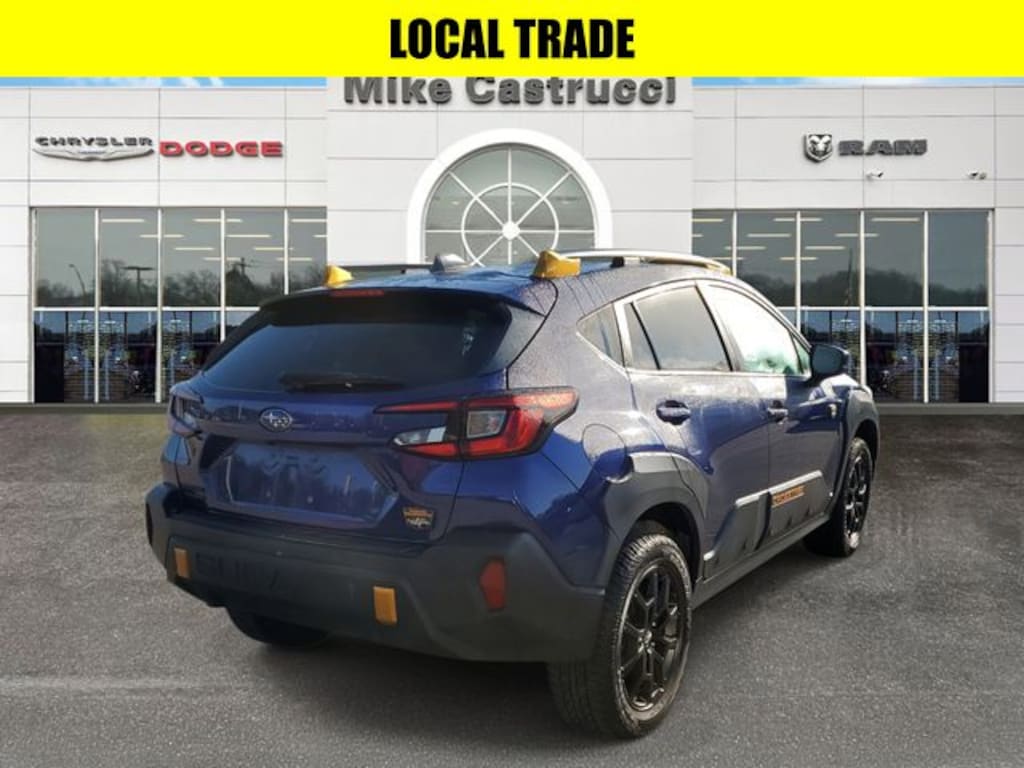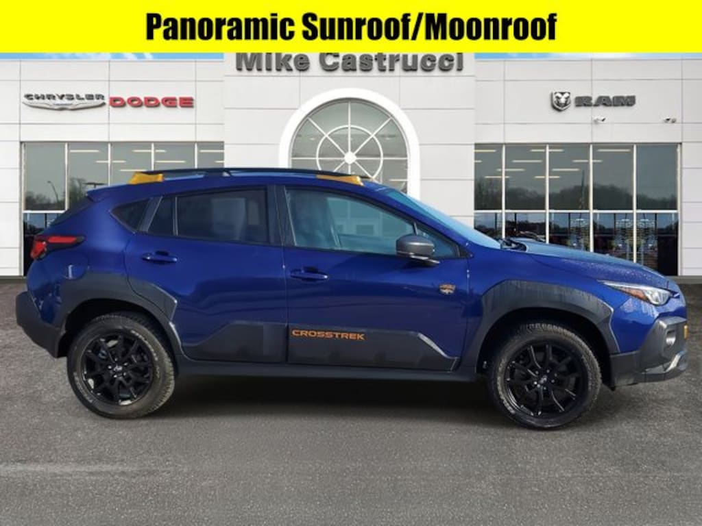 Sapphire Blue Pearl 2024 Subaru Crosstrek Wilderness AWD Lineartronic CVT 2.5L 4-Cylinder DOHC 16V BLUETOOTH HANDS FREE, Panoramic Sunroof/Moonroof, LOCAL TRADE, 4X4, Sunroof/Moonroof, One Owner!, 10-Way Power Driver's Seat, 4-Wheel Disc Brakes, ABS brakes, Air Conditioning, Alloy wheels, AM/FM radio: SiriusXM, Auto High-beam Headlights, Auto-Dimming Exterior Mirror w/Approach Light, Auto-Dimming Mirror w/Compass & HomeLink, Automatic temperature control, Bumpers: body-color, Driver door bin, Driver vanity mirror, Dual front impact airbags, Dual front side impact airbags, Electronic Stability Control, Exterior Parking Camera Rear, Front fog lights, Front reading lights, Fully automatic headlights, harman/kardon Aud & Pwr Moonroof & Pwr Driver Seat, harman/kardon Surround Sound Speaker System, Heated door mirrors, Heated Front Bucket Seats, Heated front seats, Illuminated entry, Leather Shift Knob, LED Upgrade, Outside temperature display, Overhead console, Panic alarm, Passenger door bin, Passenger vanity mirror, Power door mirrors, Power Moonroof, Power steering, Power windows, Rear Bumper Cover - Wilderness, Rear seat center armrest, Rear Seatback Protector, Remote keyless entry, Security system, Speed control, Spoiler, Steering wheel mounted audio controls, Tachometer, Telescoping steering wheel, Tilt steering wheel, Traction control, Wheels: 17" x 7.0J Matte Black Aluminum Alloy, Wilderness Package.