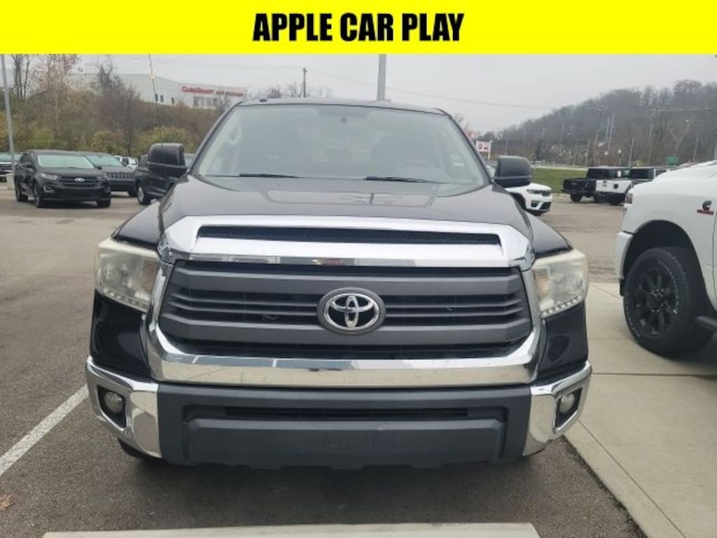 Black 2015 Toyota Tundra SR5 4WD 6-Speed Automatic Electronic with Overdrive 5.7L 8-Cylinder SMPI DOHC APPLE CAR PLAY, BLUETOOTH HANDS FREE, LOCAL TRADE, 4X4, Lift Kit With Tires and Wheels!, Android Auto, 4WD, Black Cloth, 18" x 8J 5-Spoke TRD Off-Road Alloy Wheels, 18" x 8J Styled Steel Wheels, 3-Passenger Front Bench Seat, 4-Wheel Disc Brakes, 4.30 Axle Ratio, 6 Speakers, ABS brakes, Air Conditioning, AM/FM radio: SiriusXM, Bilstein Shock Absorbers, CD player, Driver door bin, Driver vanity mirror, Dual front impact airbags, Dual front side impact airbags, Electronic Stability Control, Exterior Parking Camera Rear, Fabric Seat Trim, Fabric Seat Trim w/TRD Off-Road Package, Front Center Armrest w/Storage, Front fog lights, Front reading lights, Heated door mirrors, Illuminated entry, Low tire pressure warning, Occupant sensing airbag, Outside temperature display, Overhead console, Panic alarm, Passenger door bin, Passenger vanity mirror, Power steering, Power windows, Radio: Entune Audio Display AM/FM/HD w/CD Player, Rear Privacy Glass, Rear reading lights, Rear seat center armrest, Rear step bumper, Rear window defroster, Remote keyless entry, SIRIUSXM Satellite Radio, Speed-sensing steering, Split folding rear seat, Tachometer, Tilt steering wheel, Traction control, TRD Off Road Package, TRD Off-Road Graphics, Variably intermittent wipers.